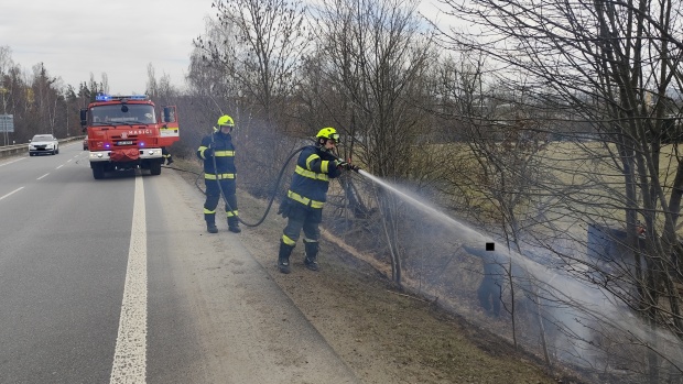 Jednotka vyjela na požár suché trávy podél silnice, na ploše asi 10x10m. Provedli jsme uhašení jedním vysokotlakým proudem.