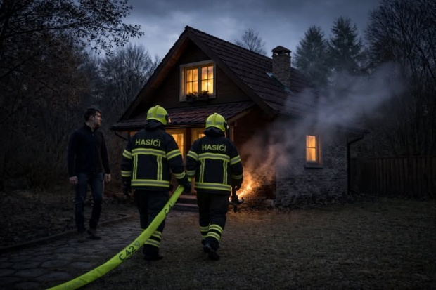 Jednotka vyjela na požár u chaty, v zahrádkářské kolonii u Koželužského potoka. Jednalo se o požár části obložení chaty, které bylo uhašeno majitelem chaty před příjezdem jednotek. Naše jednotka nezasahovala a vrátila se zpět na základnu. Ilustrační foto AI.